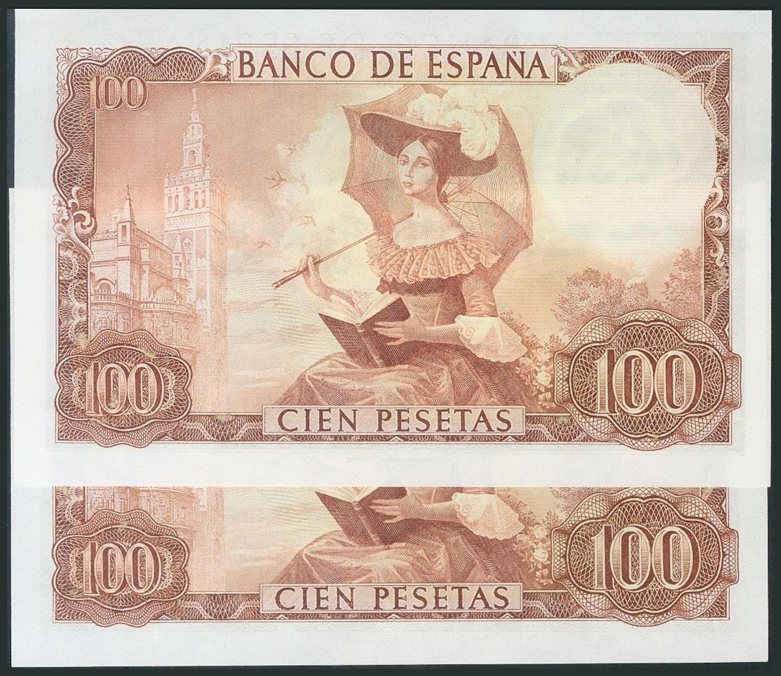 100 Pesetas. 19 de Noviembre de 1965. Pareja correlativa. Serie 1S. (Edifil 2017: 470a). SC-.