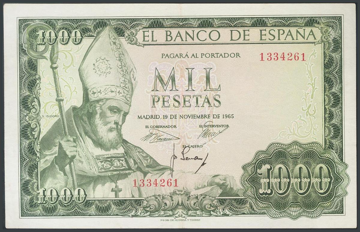 1000 Pesetas. 19 de Noviembre de 1965. Sin serie. (Edifil 2017: 471). EBC-.
