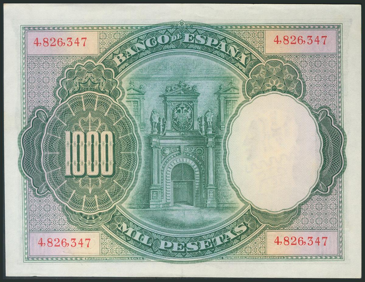1000 Pesetas. 1 de Julio de 1925. Sin serie. (Edifil 2017: 351). Conserva parte del apresto original. EBC.