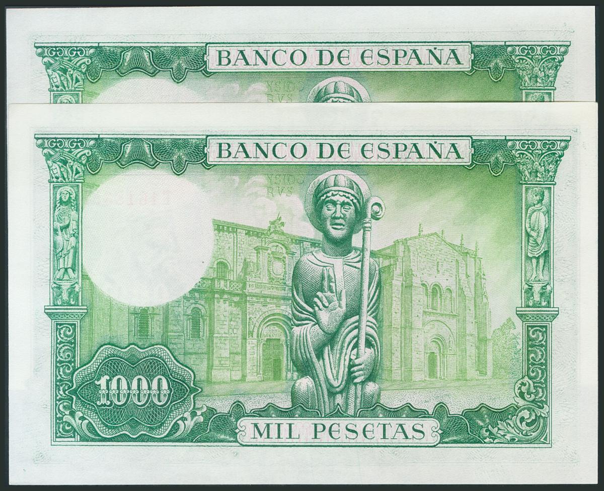 1000 Pesetas. 19 de Noviembre de 1965. Pareja correlativa. Serie T. (Edifil 2017: 471b). Conserva todo su apresto original. SC/SC-.