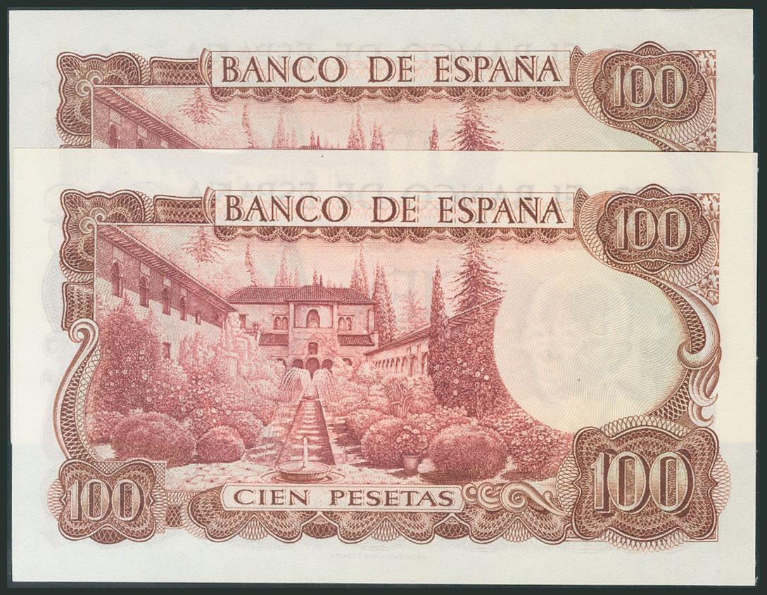 100 Pesetas. 17 de Noviembre de 1970. Pareja correlativa. Serie 3A. (Edifil 2017: 472a). SC/SC-.