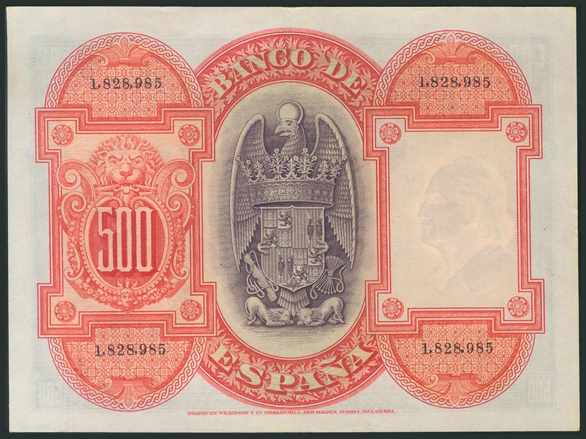 500 Pesetas. 24 de Julio de 1927. Sin serie y numeración posterior a 1602000. (Edifil 2017: 352). Conserva algo del apresto original. EBC.