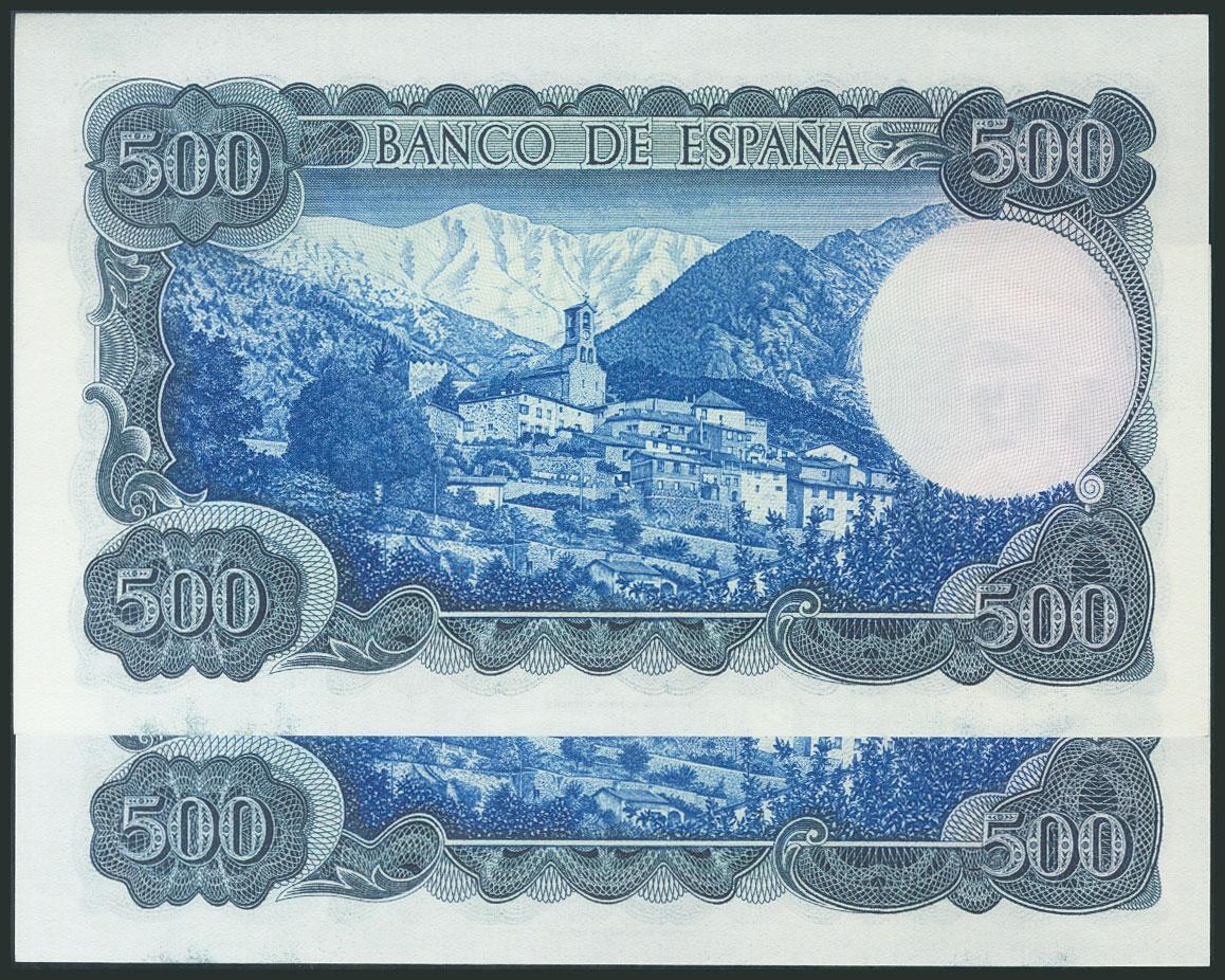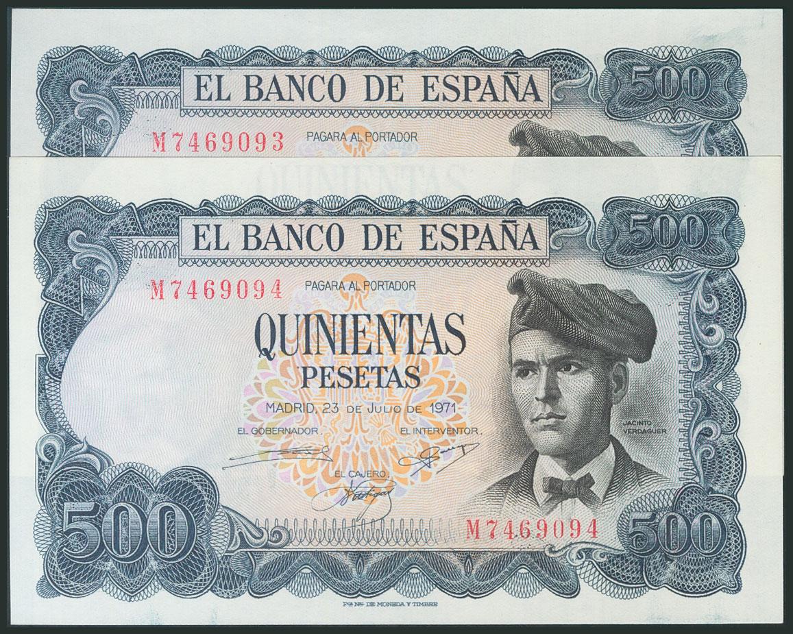 500 Pesetas. 23 de Julio de 1971. Pareja correlativa. Serie M. (Edifil 2017: 473a). SC-.