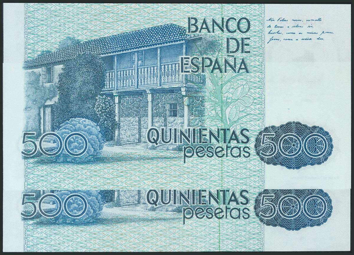500 Pesetas. 23 de Octubre de 1979. Pareja correlativa. Sin serie, numeración baja y uno de ellos capicúa imperfecto. (Edifil 2017: 476). SC.