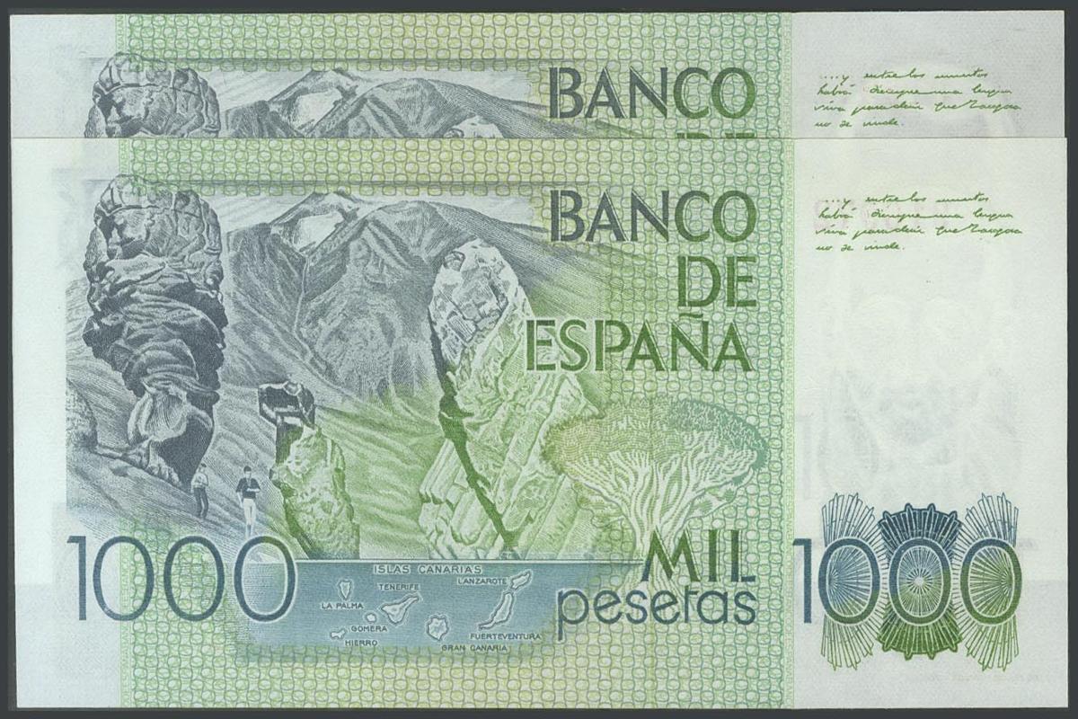 1000 Pesetas. 23 de Octubre de 1979. Pareja correlativa. Sin serie. (Edifil 2017: 477). SC.