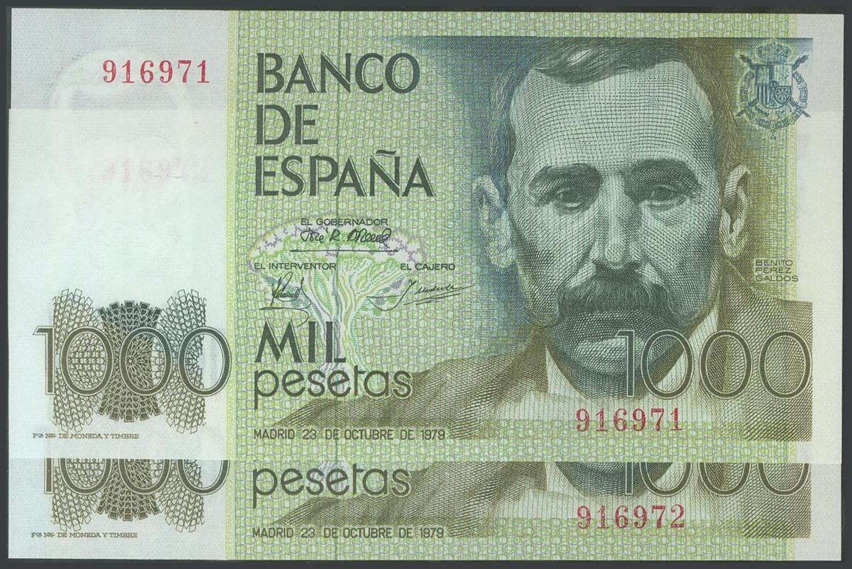 1000 Pesetas. 23 de Octubre de 1979. Pareja correlativa. Sin serie. (Edifil 2017: 477). SC.