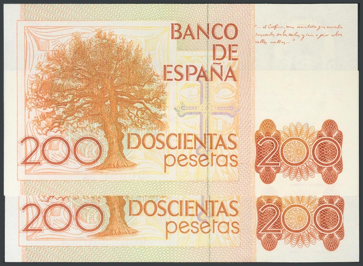 200 Pesetas. 16 de Septiembre de 1980. Pareja correlativa. Sin serie. (Edifil 2017: 480). SC.