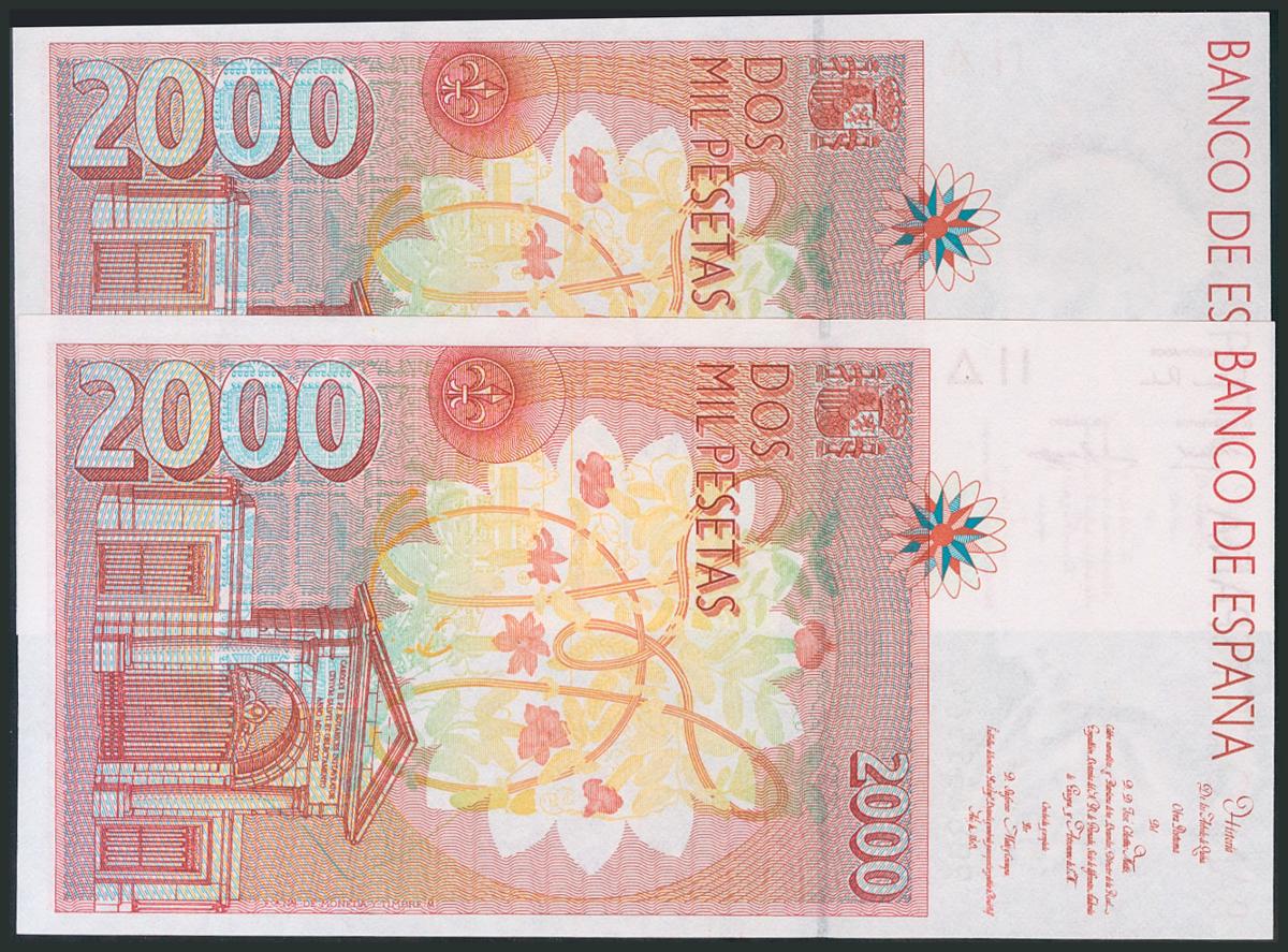 2000 Pesetas. 24 de Abril de 1992. Pareja correlativa. Serie especial 9B. (Edifil 2017: 482Ab). SC.
