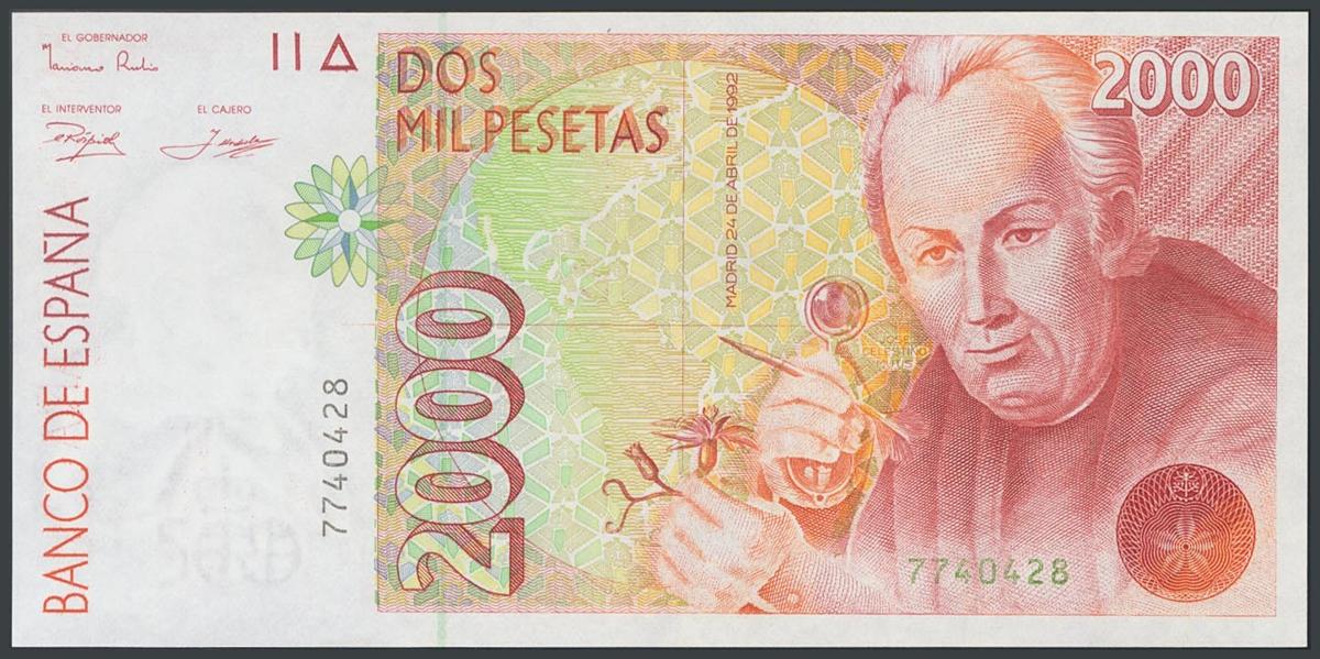 2000 Pesetas. 24 de Abril de 1992. Sin serie. (Edifil 2017: 482). SC.
