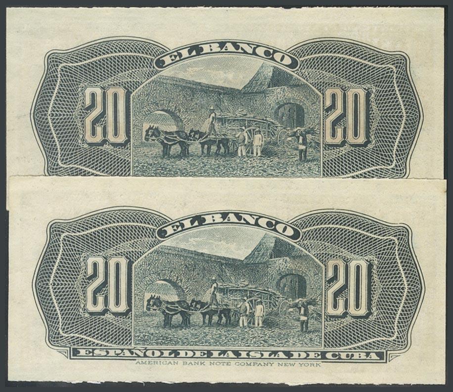BANCO ESPAÑOL DE LA ISLA DE CUBA. 20 Centavos. 15 de Febrero de 1897. Pareja correlativa. Serie I. (Edifil 2017: 85). SC-.