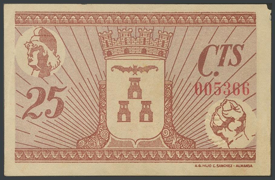ALBACETE. 25 Céntimos. (1938ca). (González: 127). MBC+.
