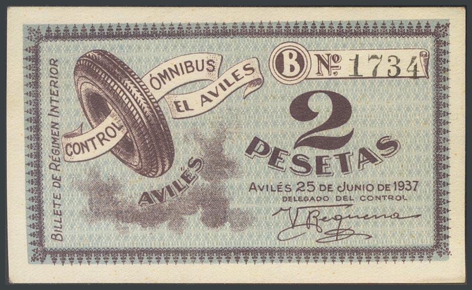 AVILES (ASTURIAS). 2 Pesetas. 25 de Junio de 1937. Serie B. (González: 798). Muy raro. SC-.