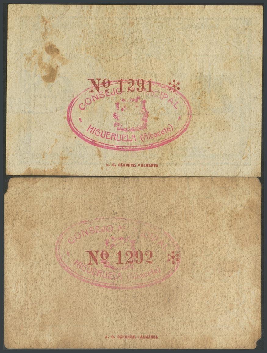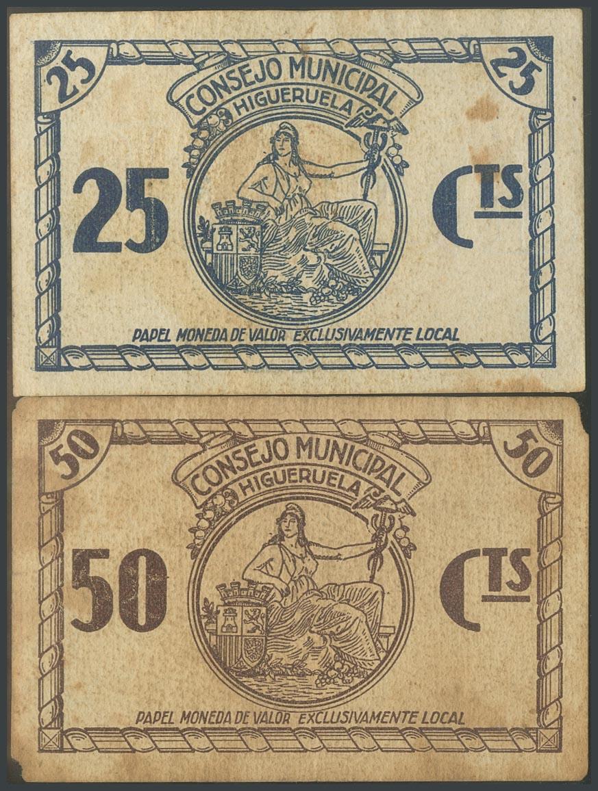 HIGUERUELA (ALBACETE). 25 Céntimos y 50 Céntimos. (1938ca). (González: 2842, 2843). MBC/BC.