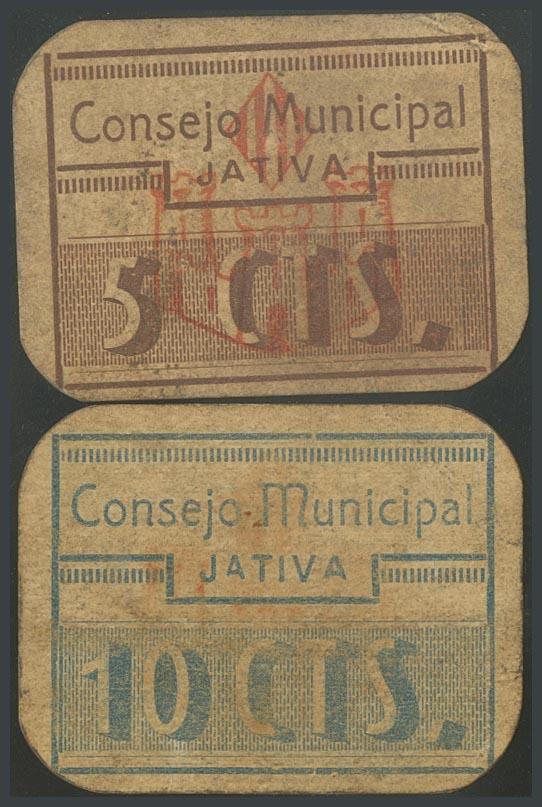 JATIVA (VALENCIA). 5 Céntimos y 10 Céntimos. (1938ca). (González: 3027/28). Inusuales. MBC.
