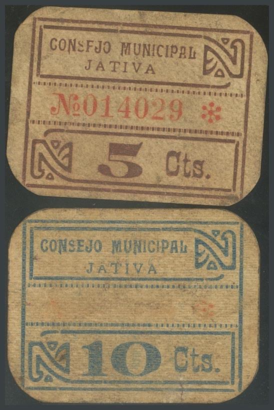 JATIVA (VALENCIA). 5 Céntimos y 10 Céntimos. (1938ca). (González: 3027/28). Inusuales. MBC.