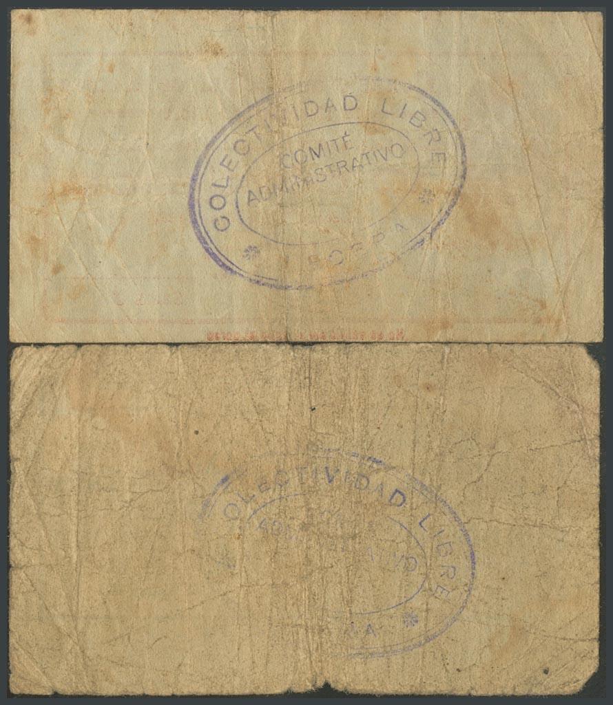 LECERA (ZARAGOZA). 10 Céntimos y 25 Céntimos. 1 de Junio de 1937. Serie J y H, respectivamente. (González: 3121, 3123). Inusuales. BC/MBC-.