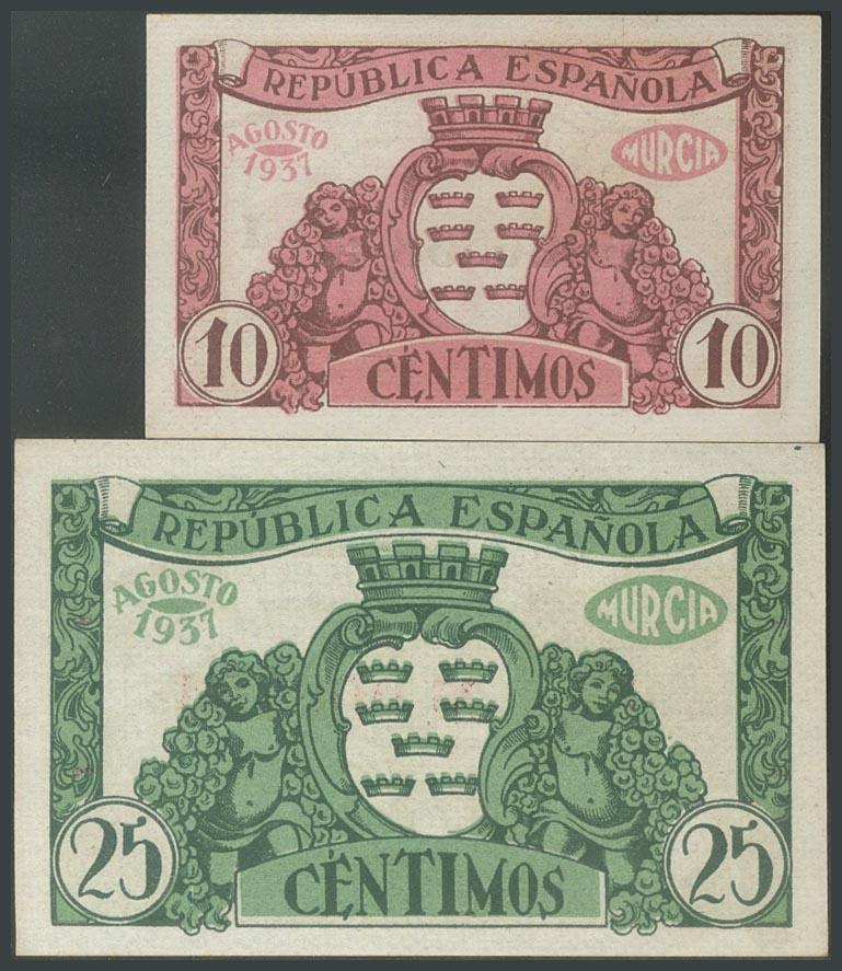MURCIA. 10 Céntimos y 25 Céntimos. (1938ca). Series I y F, respectivamente. (González: 3770, 3771). SC-.