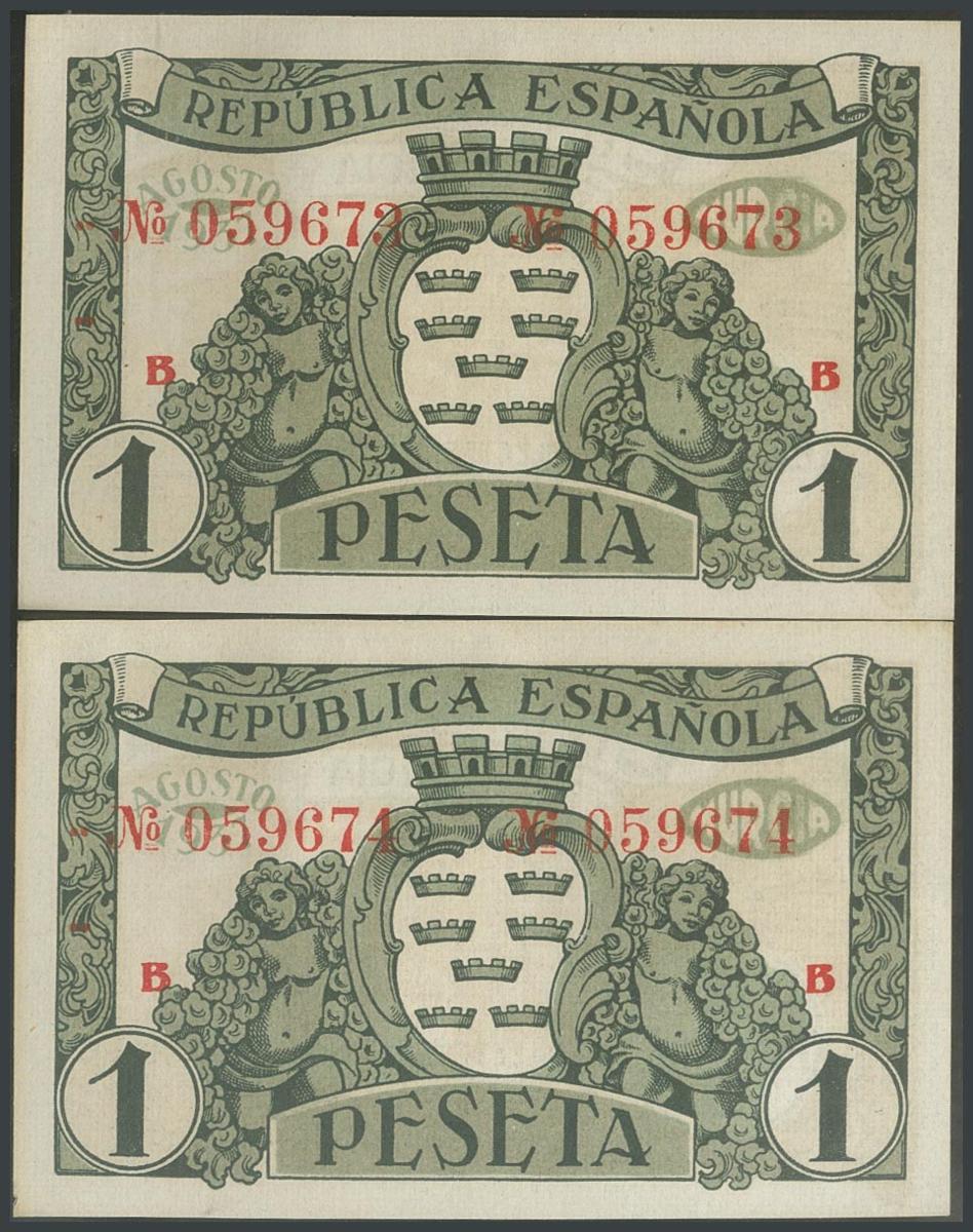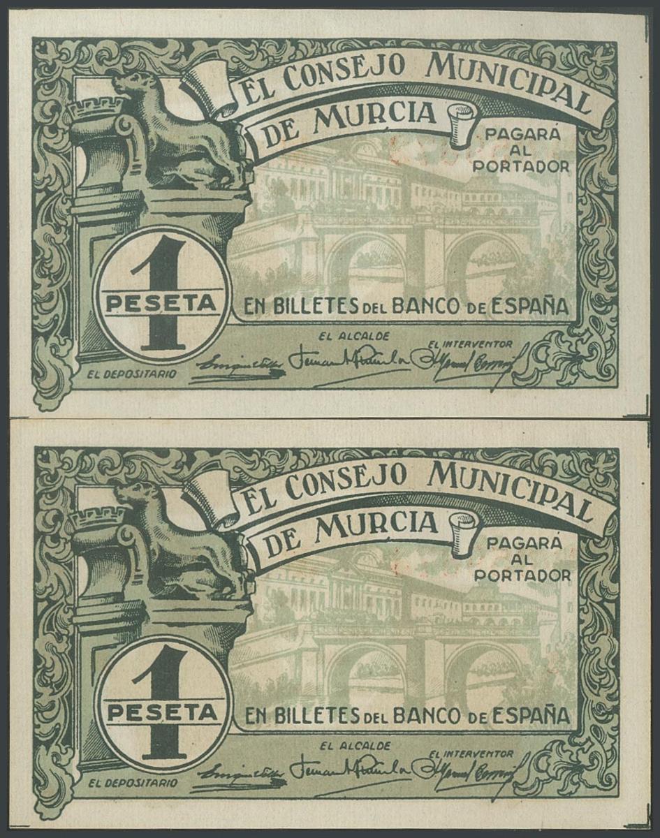 MURCIA. 1 Peseta. (1938ca). Pareja correlativa. Serie B. (González: 3773). SC-.
