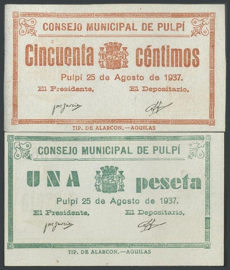 PULPI (ALMERIA). 50 Céntimos y 1 Peseta. 25 de Agosto de 1937. (González: 4413, 4414). Inusuales. EBC+.