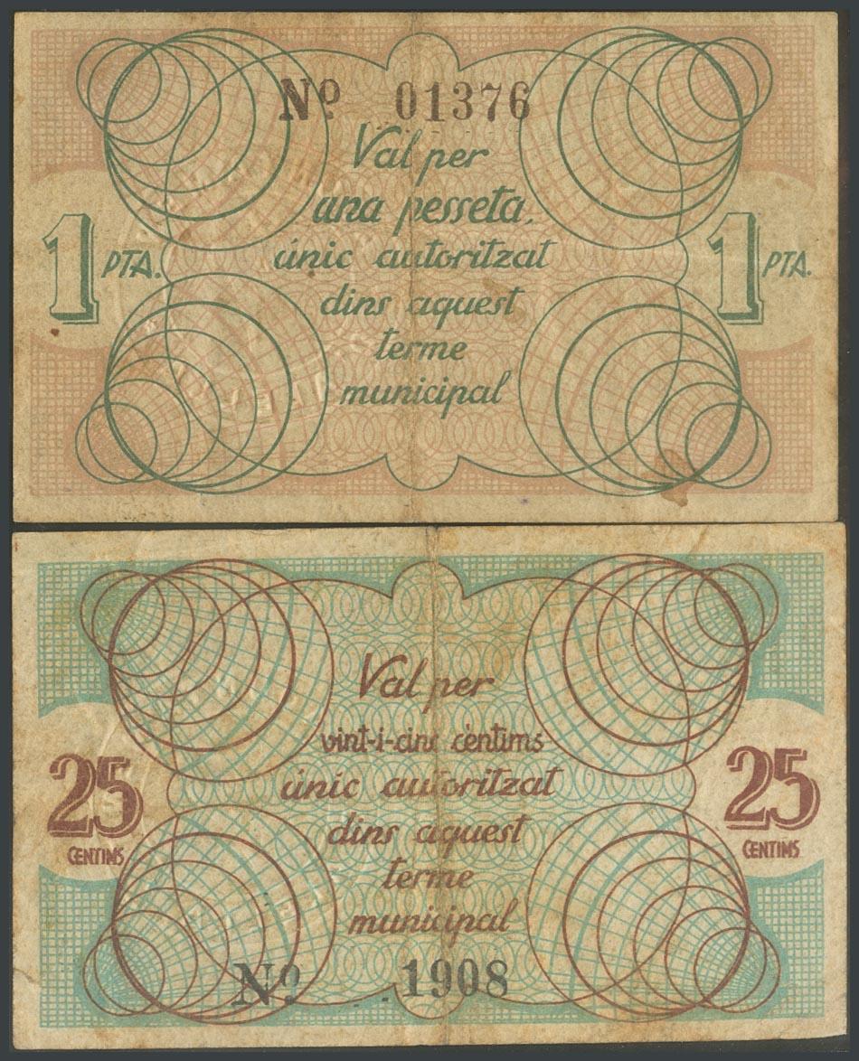 ALELLA (BARCELONA). 25 Céntimos y 1 Peseta. (1938ca). (González: 6158, 6160). MBC.
