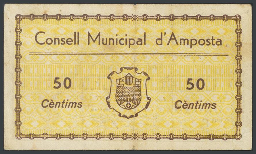 AMPOSTA (TARRAGONA). 50 Céntimos. 1 de Junio de 1937. (González: 6275). MBC+.