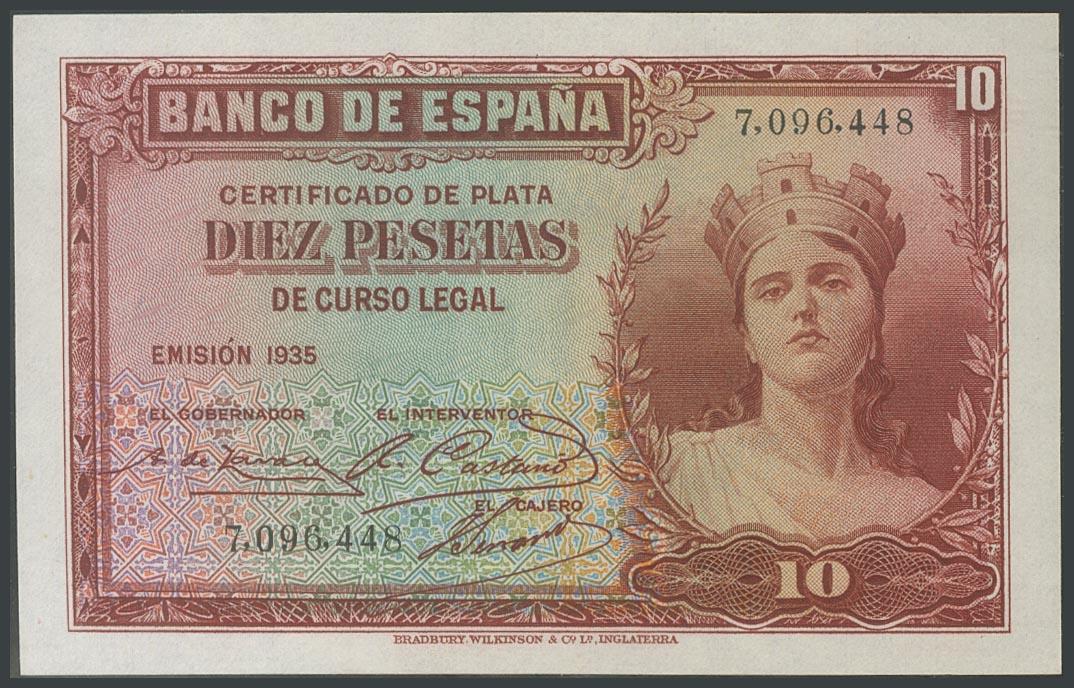 10 Pesetas. 1 de enero de 1935. Sin Serie. (Edifil 2017: 364). SC.