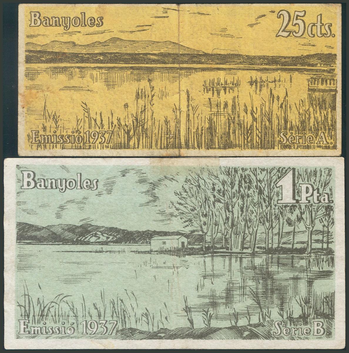 BANYOLES (GERONA). 25 Céntimos y 1 Peseta. 17 de Agosto de 1937. Series A y B. (González: 6506/07). BC/MBC.