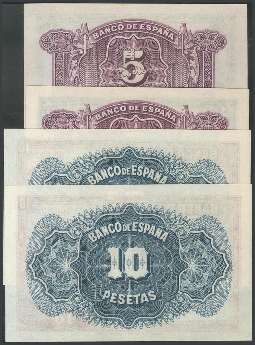 5 Pesetas y 10 Pesetas. 1935. Parejas correlativas. Series D y C, respectivamente. (Edifil 2017: 363a/364a). Apresto original. SC-/EBC+.