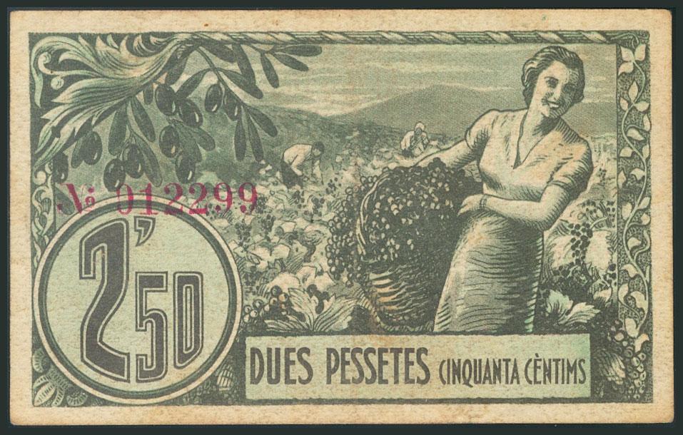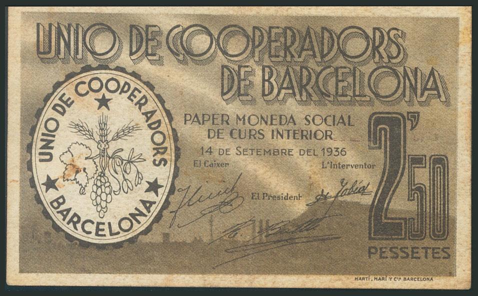 BARCELONA. 2´50 Pesetas. 14 de Septiembre de 1936. (González: 6882). MBC.