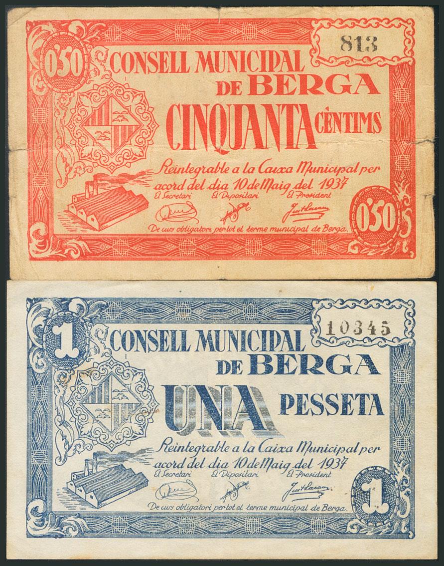 BERGA (BARCELONA). 50 Céntimos y 1 Peseta. 10 de Mayo de 1937. (González: 7037/38). BC/EBC.