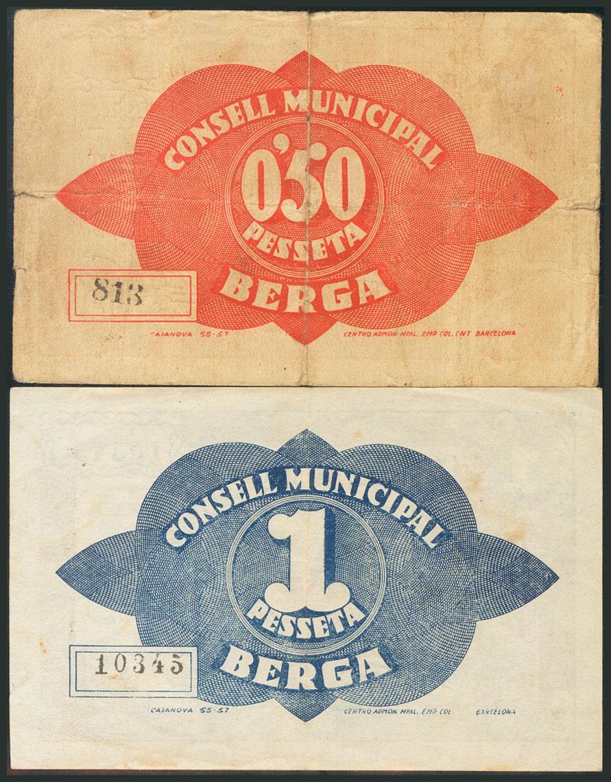 BERGA (BARCELONA). 50 Céntimos y 1 Peseta. 10 de Mayo de 1937. (González: 7037/38). BC/EBC.