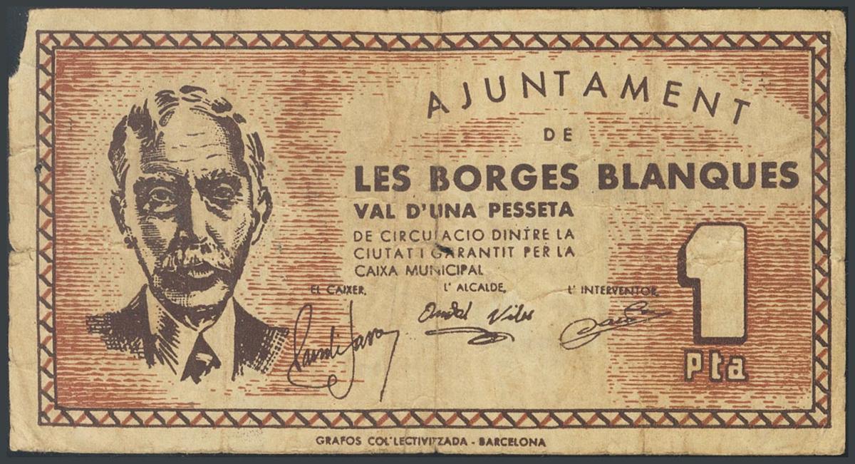 LES BORGES BLANQUES (LERIDA). 1 Peseta. (1938ca). (González: 7142). RC.