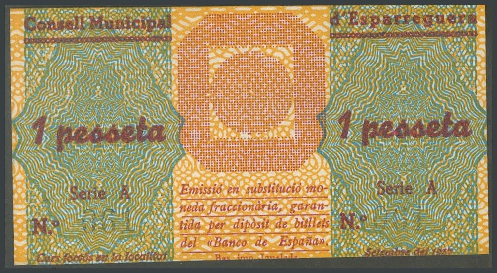 ESPARREGUERA (BARCELONA). 1 Peseta. Septiembre 1937. Serie A. (González: 7749). SC.