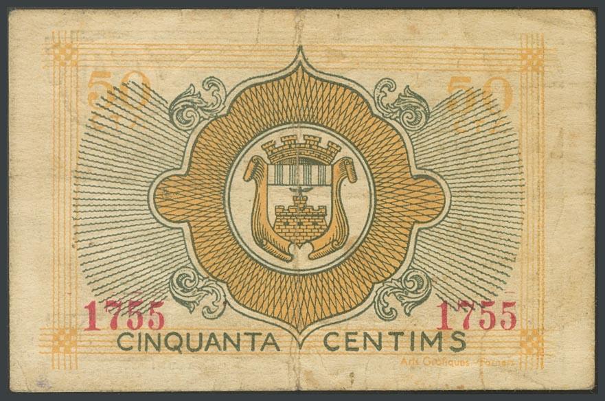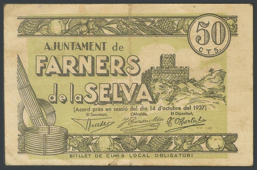 FARNES DE LA SELVA (GERONA). 50 Céntimos. 14 de Octubre de 1937. (González: 7831). MBC+.