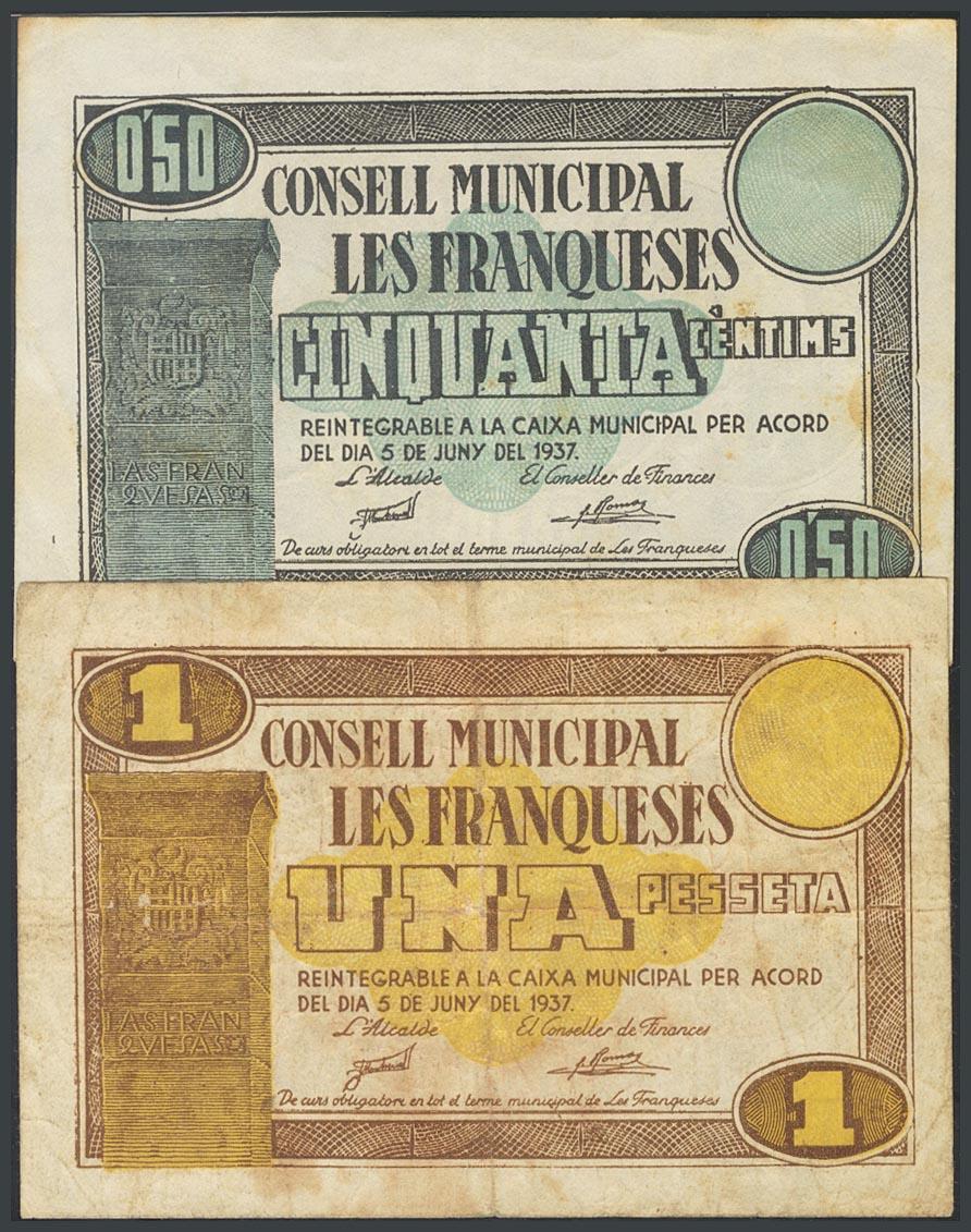 LES FRANQUESES (BARCELONA). 50 Céntimos y 1 Peseta. 5 de Junio de 1937. (González: 7930, 7931). MBC.