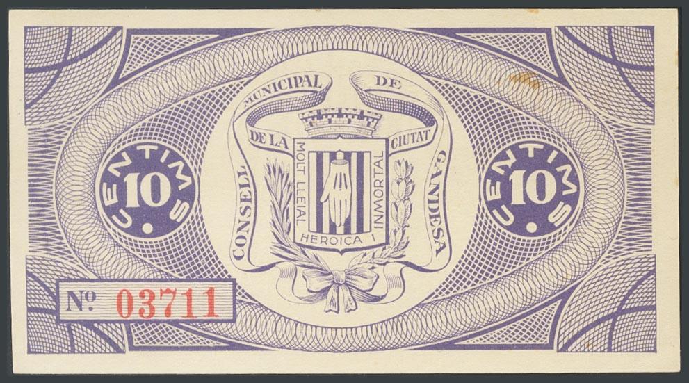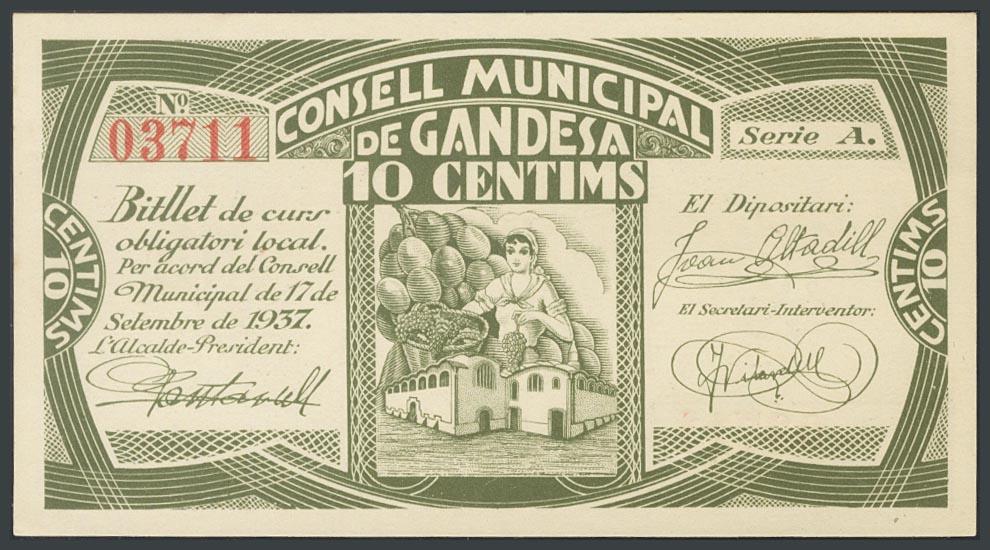 GANDESA (TARRAGONA). 10 Céntimos. 17 de Septiembre de 1937. (González: 7961). EBC.
