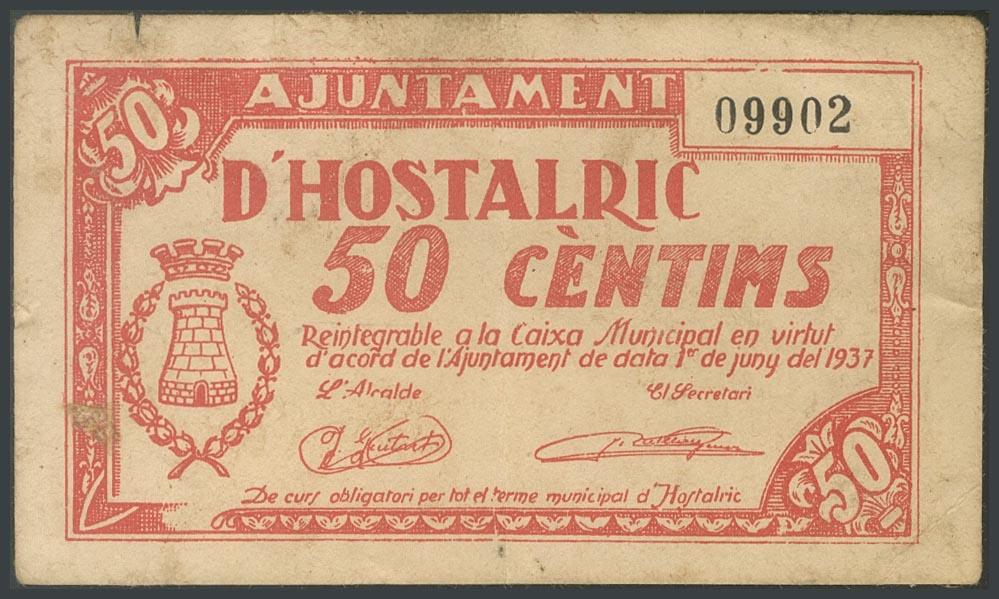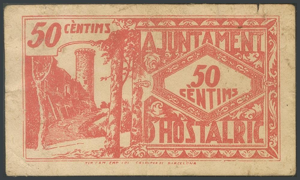 HOSTALRIC (GERONA). 50 Céntimos. Junio 1937. (González: 8232). BC.