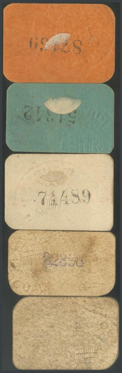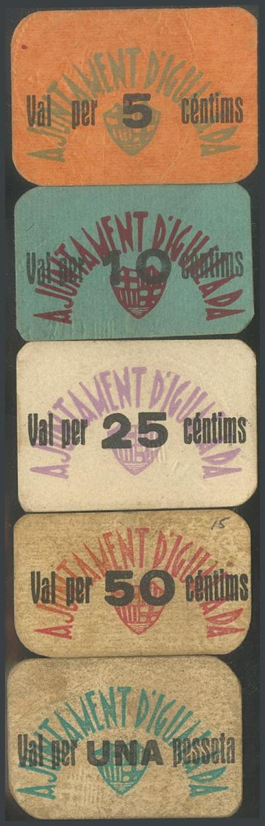 IGUALADA (BARCELONA). 5 Céntimos, 10 Céntimos, 25 Céntimos, 50 Céntimos y 1 Peseta. (1938ca). (González: 8247, 8249, 8250, 8252, 8253). EBC/MBC.