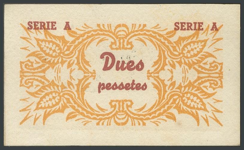 LILLA (TARRAGONA). 2 Pesetas. (1938ca). Serie A. (González: 8310). SC.