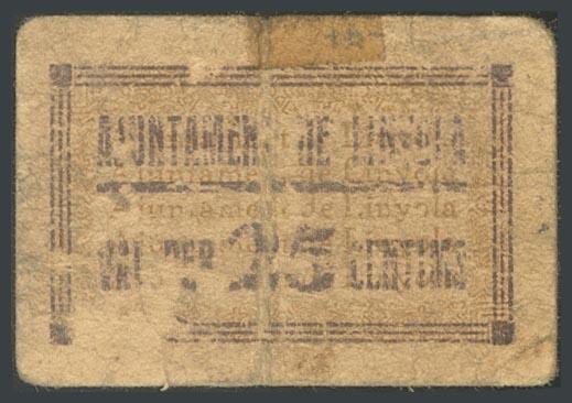 LINYOLA (LERIDA). 25 Céntimos. 1938. (González: 8317). Muy raro. MBC-.