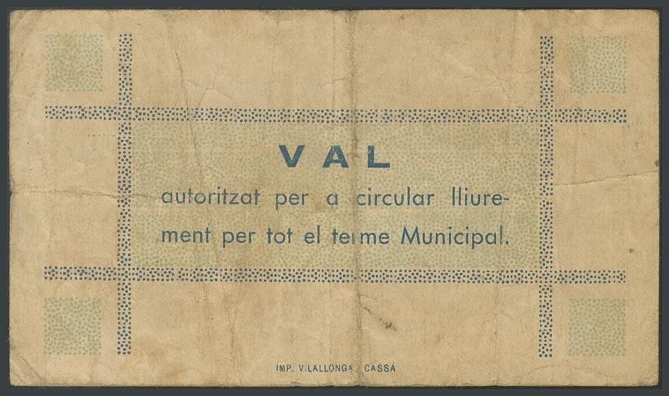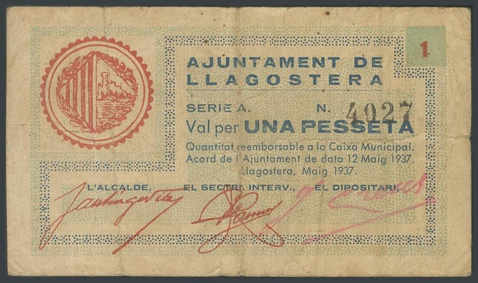 LLAGOSTERA (GERONA). 1 Peseta. Julio 1937. (González: 8337). Inusual. MBC.