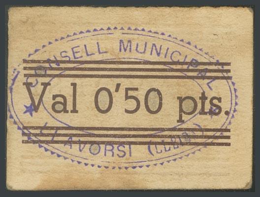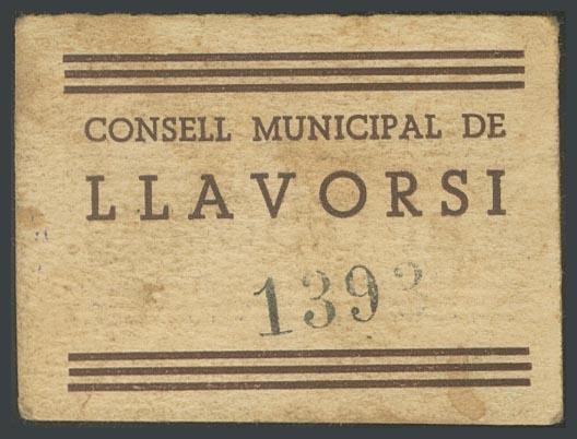 LLAVORSI (LERIDA). 50 Céntimos. (1937ca). (González: 8356). Raro. MBC+.