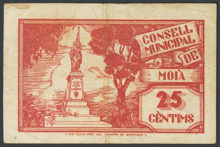 MOIA (BARCELONA). 25 Céntimos. (1938ca). (González: 8689). MBC.