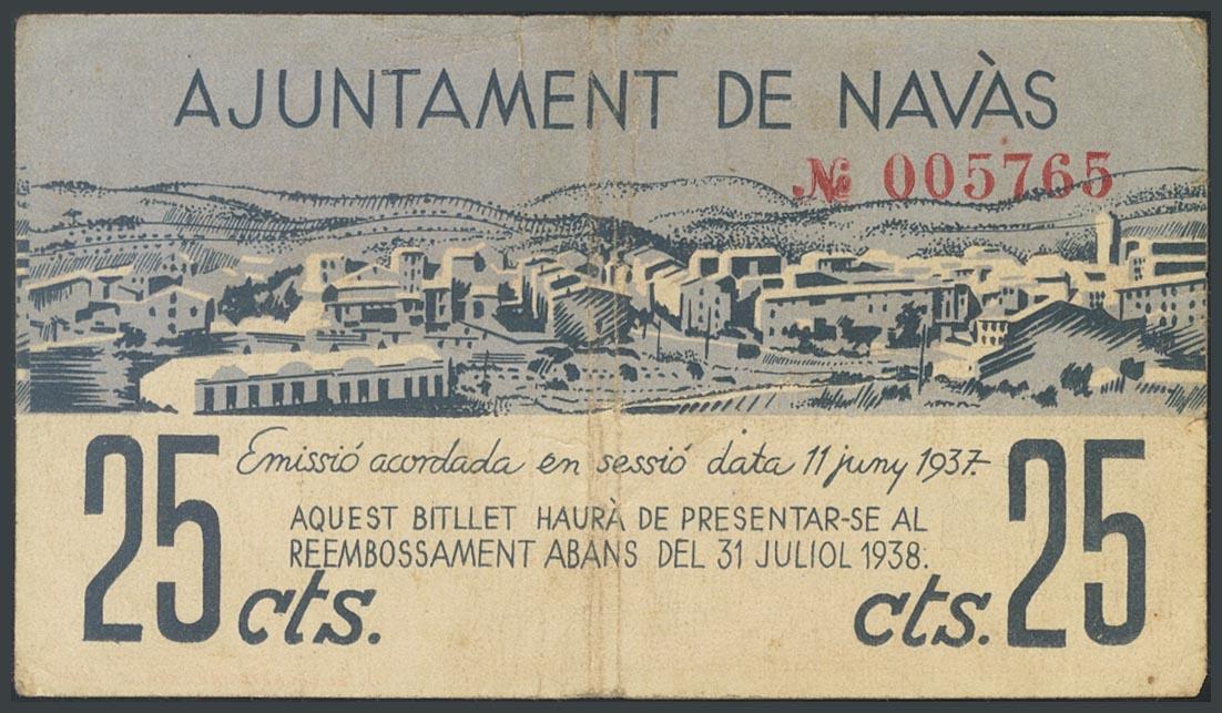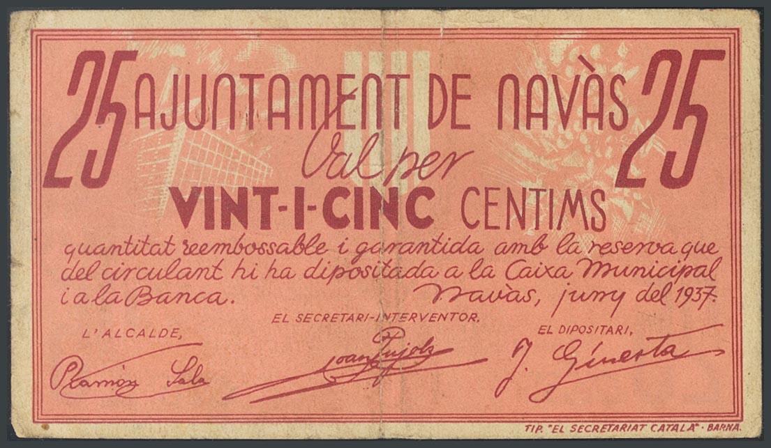 NAVAS (BARCELONA). 25 Céntimos. 11 de Junio de 1937. (González: 8887). BC+.