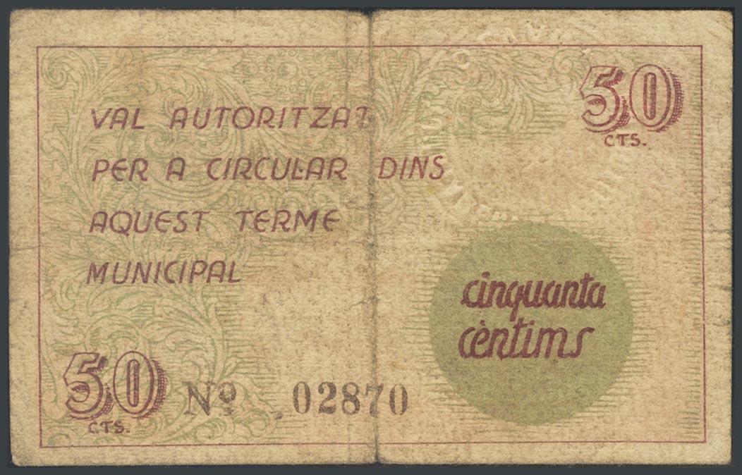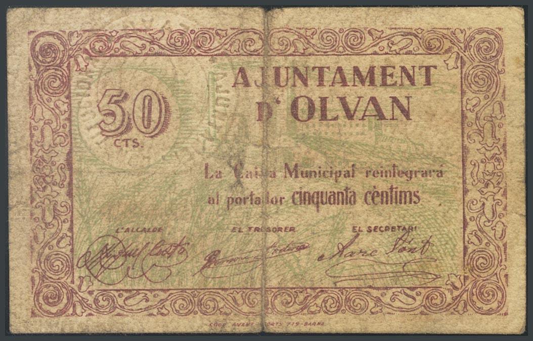 OLVAN (BARCELONA). 50 Céntimos. (1938ca). (González: 9031). BC.
