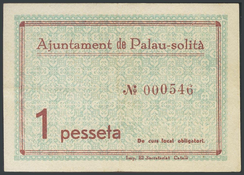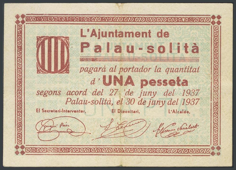 PALAU SOLITA (BARCELONA). 1 Peseta. 30 de Junio de 1937. (González: 9130). MBC.