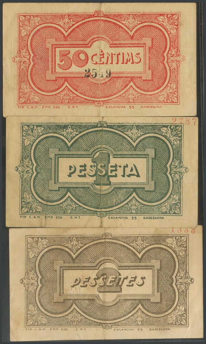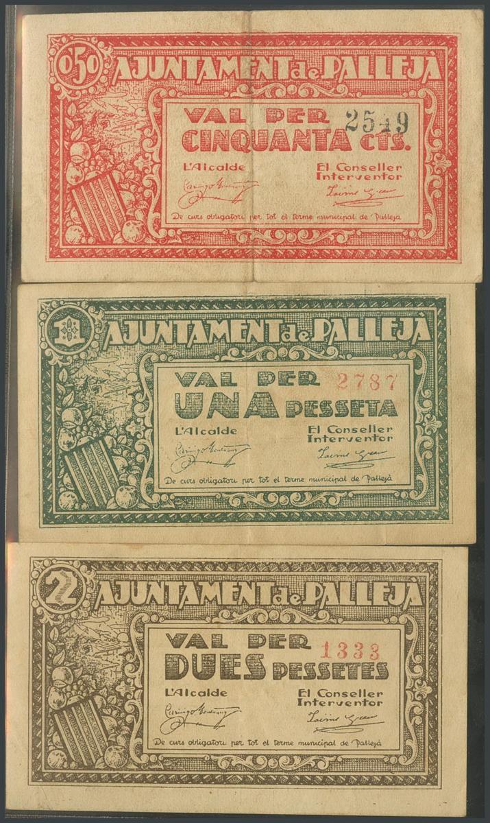 PALLEJA (BARCELONA). 50 Céntimos, 1 Peseta y 2 Pesetas. (1938ca). (González: 9134/36). Raros. MBC.
