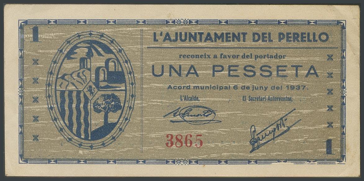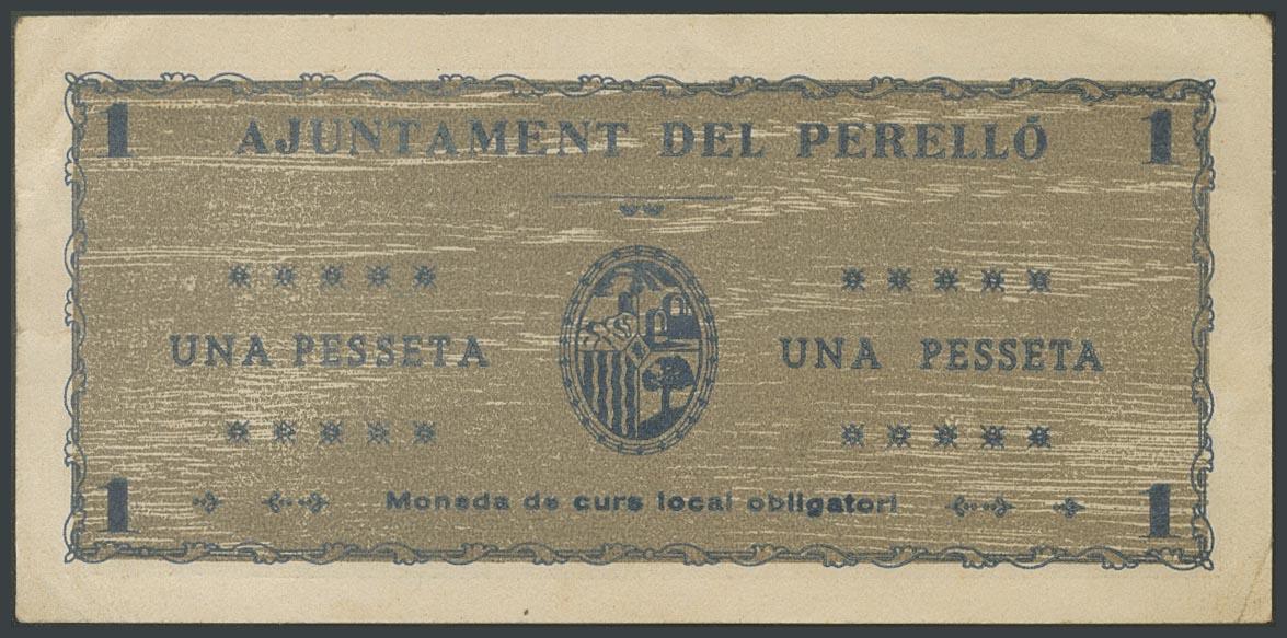 PERELLO (TARRAGONA). 1 Peseta. 6 de Junio de 1937. (González: 9204). Raro. EBC.