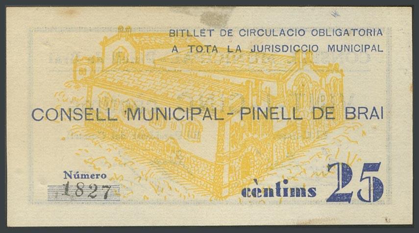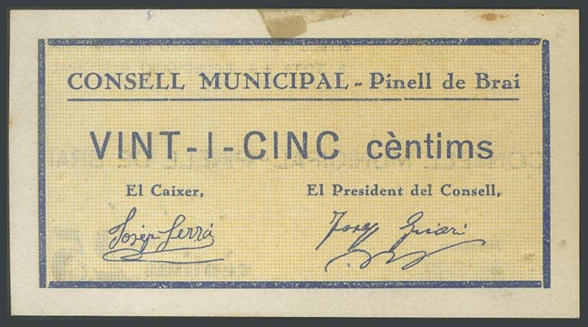 PINELL DE BRAI (TARRAGONA). 25 Céntimos. (1938ca). (González: 9238). Muy raro. EBC.