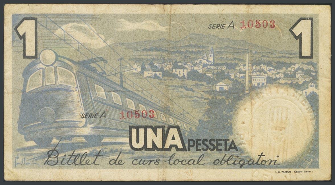PINS DEL VALLES (BARCELONA). 1 Peseta. 12 de Mayo de 1937. Serie A. (González: 9245). BC.